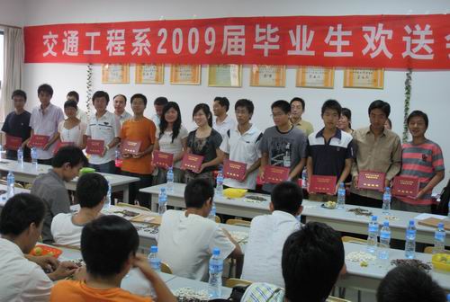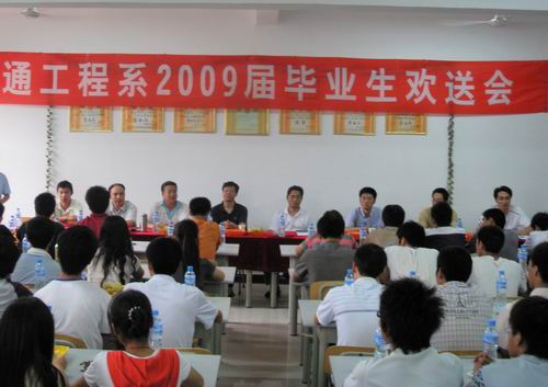 6月12日,交通工程系在3号实训楼会议室举办了2009届毕业生欢送会,院党委副书记王卫东出席欢送会,院学生处副处长李响、交通系党总支书记孙田星、系主任务新超、副主任田万涛、副书记杜广平及全体教师和学生代表近200人参加了会议,欢送会由系学生工作办公室主任焦东良主持。