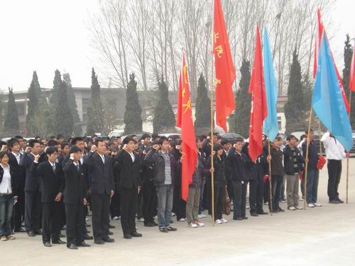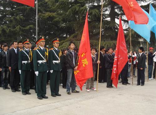 清明时节,日暖风熏,翠柏凝青,更显得郁郁葱葱。由开封军分区、团市委、市教育局、市民政局举办的全市青少年清明文化节祭扫活动暨新团员入团仪式在市烈士陵园纪念碑前隆重举行。烈士墓前,统一佩戴着我院青年志愿者会徽的500多名同学怀着无比凝重的心情肃立在革命烈士纪念碑前,拜谒革命烈士。纪念碑上那巍然屹立的战士仿佛正引领着同学们向远方眺望。