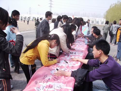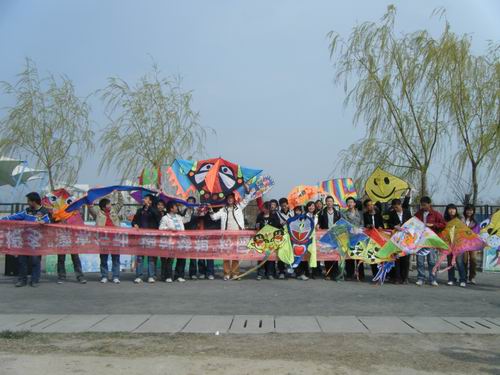 各式各样的风筝飘扬在操场上空,有灵巧的燕子、美丽的鱼……风筝是梦想的象征,传递和谐、安宁和美好。有的风筝在高处相逢缠绕,有的随风而去。最后,风筝一个个渐飞渐远,而希望也随之放飞。飘舞的风筝在净化校园每一寸土地的同时也净化了同学们的心灵。活动结束时进行了学生签名及现场抽奖,经过集体评选,评出了最佳风筝创意奖。