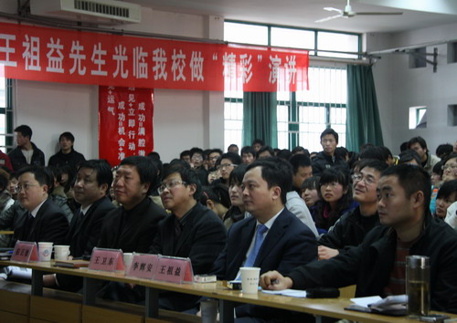 3月5日下午,河南新联通掌门人王祖益博士应邀做客我院,为广大学子作了一场“精彩文化、精彩人生”的主题讲座。院领导茹正波、王卫东以及学生处、自动化系负责同志出席了活动。开封电视台、《开封日报》等新闻媒体对活动进行了报道,开封信息港对此活动进行了全程现场同步直播。