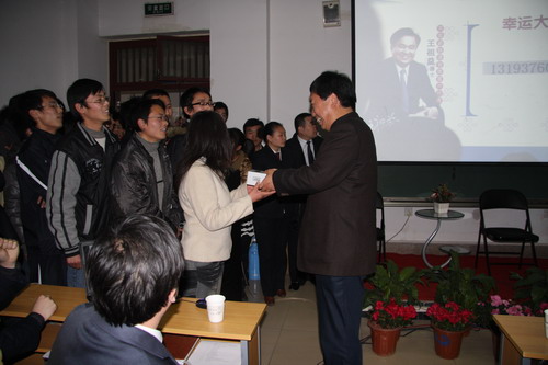 在随后的现场互动环节中,同学们踊跃提问,向王博士提出了“如何能够在在逆境中应对挑战”、“经济危机中的大学生就业”和“企业创新”等问题,王祖益博士现场做了精彩的解答。