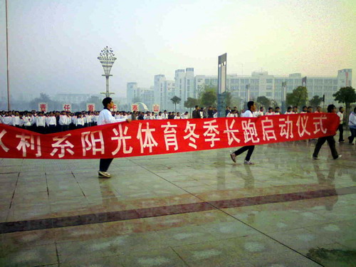“阳光体育冬季长跑活动”是教育部、国家体育总局、共青团中央为增强大中学生身体素质发起的一项全民健身运动,目的在于促进青少年的健康成长。11月份以来,我院水利系、交通系、财经系、信息系、环化系等系都制定了阳光体育冬季长跑活动计划,并分别举行了冬季长跑活动仪式,各系领导参加了仪式。