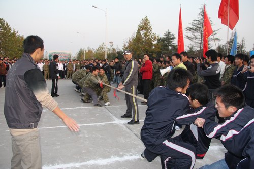 起跑仪式开始前,同学们进行了一场激烈的拔河热身赛。赛场上,各系代表队队员们都竭尽全力奋勇争锋;赛场下,拉拉队员们舞动旗帜,激情助威。最终水利系、土木工程系、自动化工程系和社科部获得一等奖,信息工程系、管理系、水资源系等分别获得二、三等奖。刘紫婷副院长在起跑仪式上宣布了拔河热身赛的成绩。