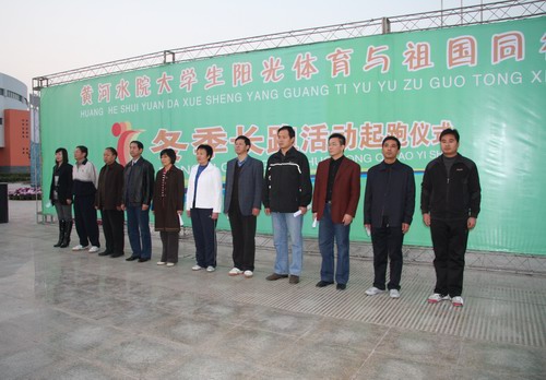 在激昂的阳光体育之歌中,党委副书记、工会主席张惠贞宣布我院阳光体育冬季长跑正式开始,并鸣响了起跑之枪。在院领导的领导下,1500名学生喊着响亮的口号,绕着完美网页版主干道共同跑动。