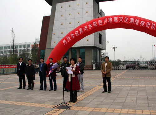 副院长刘紫婷对突击队的工作给予了高度的肯定,她说,在“5.12”大地震灾后重建的关键时刻,突击队放弃了中秋佳节和家人团聚的机会,千里驰援灾区重建,以认真负责的态度,不辞辛苦,甘于奉献,为彭州地区重建测量奋力奔波,为灾区人民重建家园劳心劳神。突击队通过实施现场教学、集中培训和专门指导,完成了对四川水院学生测量技能培训工作,圆满完成了对口支援任务,用辛勤的汗水描绘出了葛仙山镇老百姓的希望。这既是一次意义深远的社会实践,更是一次教与学的“双赢”。他们在灾区的工作充分体现了黄河水院人重大义、顾大局、讲大德、献大爱的优良品质,是黄河水院人的优秀代表。她代表院党委、院行政及全院16000名师生员工向突击队表示热烈的欢迎和崇高的敬意!