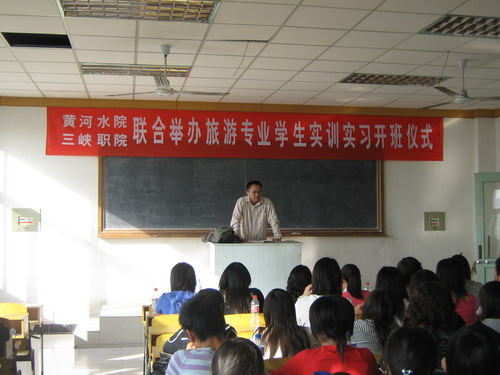 10月14日,湖北三峡职业技术学院旅游管理专业带头人、管理工程系主任余远国副教授带领该院旅游教研室主任王玲、青年教师王玮和10名2006级旅游英语专业学生来到我院,就合作举办旅游专业学生顶岗实习进行交流。在我院东校区,两院联合举办了隆重的开班仪式,我院副院长刘紫婷教授出席开班仪式并讲话。