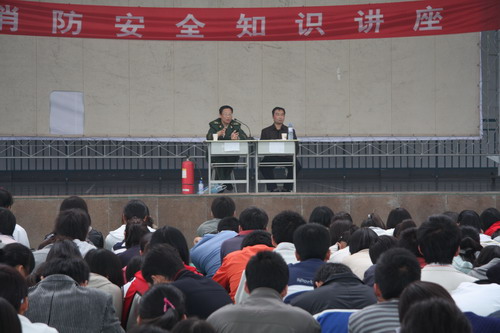 为了进一步普及消防知识,提高预防火灾和火场逃生自救能力,10月21日下午,保卫处举办了2008级新生消防安全知识讲座,由开封市武警消防总队吕志勇教官、我院保卫处消防政保科长何长胜为大家培训相关安全知识,我院近千名学生参加了这次活动。