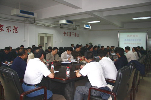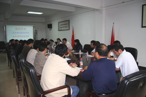 茹正波副院长对来访的各位来宾表示热烈欢迎,希望两院在考察交流中互相学习,交流宝贵经验,共同探讨高等职业教育的发展。之后,我院党委副书记王卫东从我院的办学历史、职业教育发展历程、示范院校建设等三个方面向客人们介绍了学院的整体情况。齐齐哈尔职业学院党委书记、院长曹勇安简要介绍了该院开展职业教育的有关情况,并对黄河水院近几年的快速发展以及在国家示范性高等职业院校建设中取得的优异成绩表示祝贺,希望能不断地加强两院之间的合作与交流。