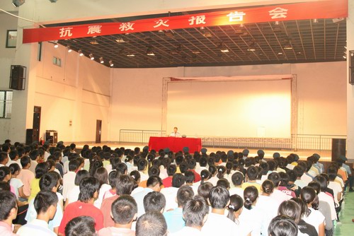 9月13日,驻汴空降兵部队第127团抗震救灾报告会在我院风雨球场隆重举行。赴川抗震救灾的驻汴空降兵部队第127团为师生们带来了一场感人至深的报告。我院08级四千六百余名新生、新生辅导员、辅导员助理、学生处相关人员共同聆听了报告。