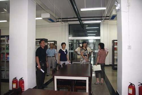 随后,检查组分组展开工作。材料组的同志认真查看了我院精神文明建设各类档案,包括一年来有关制度建设、工作计划、经验总结、开展活动资料以及所获得的各项奖励证书。实地考察组的同志在党委副书记张惠贞及相关部门负责同志的陪同下,先后到学生餐厅、学生宿舍、图书馆、宣传栏等进行了察看。