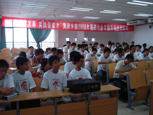 仪式上,机电工程系分团委书记薛冰宣读了《完美网页版开展黄河水院2008年暑期社会实践活动的通知》,院团委副书记谷献晖详细介绍了今年暑期社会实践活动具体工作安排及各小分队实践活动去向和实践任务。今年我院暑期大学生社会实践活动采用集中与分散相结合的形式,全院共有九支小分队奔赴开封、信阳等地全面展开社会实践活动,深入城镇乡村、田间地头、企业车间、街道社区开展志愿服务。志愿者们将结合自身专业、知识优势,以服务新农村建设为宗旨,深入农村,广泛开展形式多样的社会实践活动。