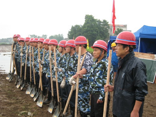 突击队到达秀水镇开封市援建过渡房建设工地时,正遇开封市副市长王学杰等开封市委、市政府领导到一线慰问抗震救灾的施工队伍。市委领导和市抗震救灾前线指挥部的领导对黄河水院抗震救灾突击队的到来表示热烈欢迎,对黄河水院能以实际行动参加抗震救灾给予了高度评价,市委领导发表了热情洋溢的讲话并与每个队员握手。