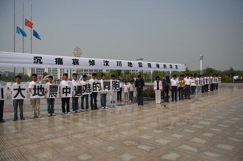 2008年5月19日14时28分,我院上空防空警报鸣响,院领导刘宪亮、张惠贞、孙五继、茹正波、王卫东、刘紫婷带领全院一万多名师生,和全国人民一起向四川汶川大地震遇难同胞默哀3分钟。