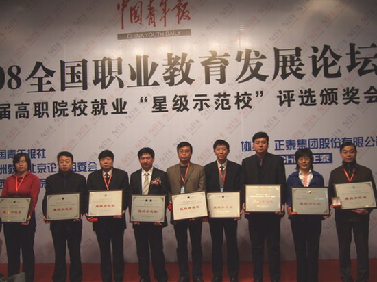 “2008全国职业教育发展论坛暨首届全国高职院校就业‘星级示范校’评选颁奖会”的举行恰逢“两会”召开,引起了职业教育界和“两会”代表、委员的广泛关注。