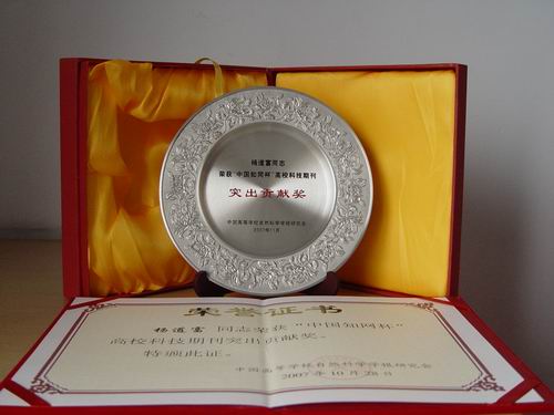 “中国知网杯”高校科技期刊突出贡献奖,旨在鼓励和表彰对高校科技期刊研究工作做出突出贡献的同志,制定了非常具体的参评条件。条件包括两个方面,首先,获奖者所编刊物应具备下列条件之一:获1999年全国优秀高校自然科学学报及教育部优秀科技期刊;获得第一、二、三届国家期刊奖,国家期刊奖提名奖、国家期刊奖百种重点期刊;获得2006年首届中国高校精品•优秀•特色科技期刊奖。其次,获奖者1997年以来在编辑学核心期刊以及国际编辑出版类的刊物上发表2篇以上论文(必须是第一作者或独立发表)。