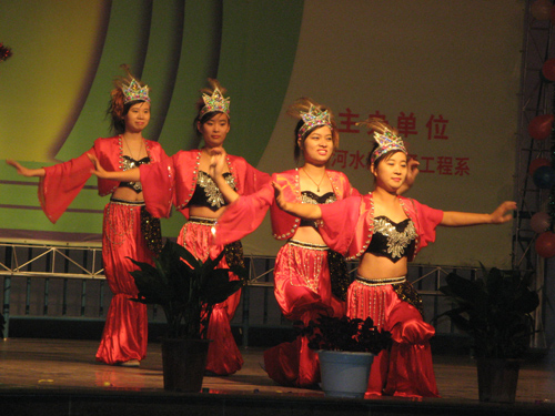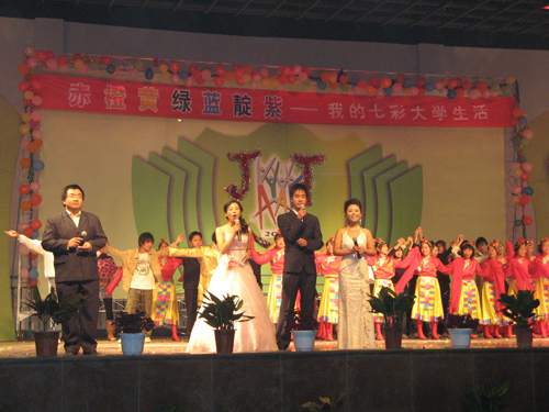 此次晚会是我院第十一届科技文化艺术节的一个组成部分。晚会上,同学们自编自演的西藏舞、杂技、黄梅戏、相声、小品等节目精彩不断,引来阵阵喝彩。整台晚会高潮迭起,气氛热烈。
