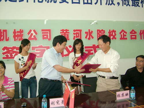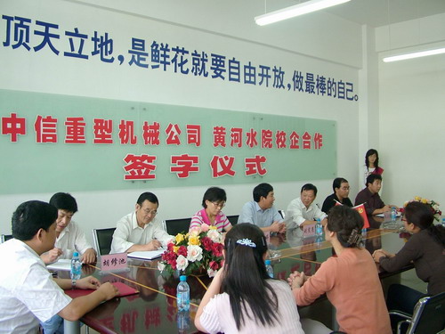 9月5日上午,在教学楼7109房间,院长刘宪亮代表学院与中信重型机械公司共同签署了校企合作协议书。之后,在新落成的4号实验楼前,双方举行了简朴、庄重的“中信重型机械公司人才培养基地”揭牌仪式。