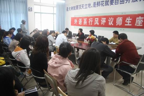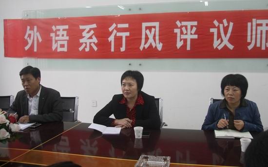 10月11日下午,外语系在教学楼7109会议室举行了行风评议师生座谈会。院党委书记张惠贞出席座谈会,在长达3个小时的座谈中,与外语系负责人王爱琴、樊建科及30余名师生亲切交谈,认真听取师生意见建议,充分沟通交流。