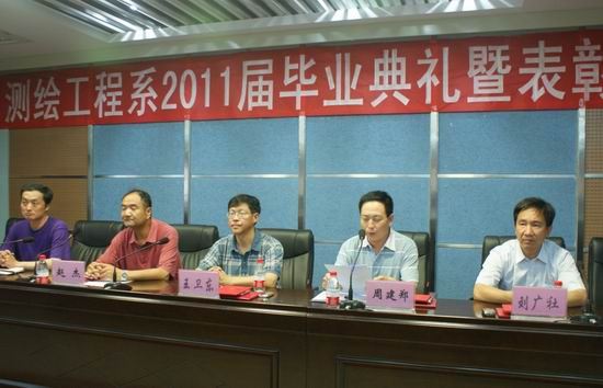 6月22日下午,测绘工程系在院学术报告厅隆重举行2011届毕业典礼暨表彰仪式。院党委副书记、纪委书记王卫东出席典礼,测绘系书记周建郑、系主任赵杰、副书记刘广社、副主任纪勇、部分专业教师及在校学生代表近220人参加了毕业典礼。测绘工程系学工办主任高琼主持毕业典礼。