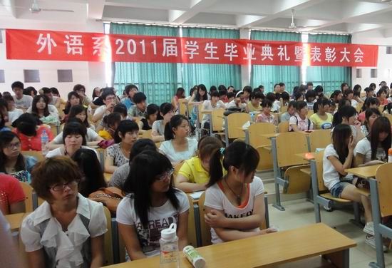 6月15日上午,外语系2011届毕业典礼暨表彰仪式隆重举行,院党委副书记、纪委书记王卫东出席典礼,院学生处副处长朱焕立、外语系书记樊建科、系副主任王爱琴及部分学工人员、08级全体学生和在校学生代表近220人参加了毕业典礼。外语系分团委书记王成伟主持毕业典礼。