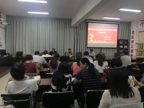 9月8日下午,我校各部门专题学习习近平总书记《培养担当民族复兴大任的时代新人------坚持把立德树人作为根本任务》的署名文章和《思政课是落实立德树人根本任务的关键课程》重要论述等内容。专题学习内容深刻阐述讲好思政课的重大意义,对提高思政课教师素养、推动思政课改革创新、加强党对思政课建设的领导提出明确要求、作出全面部署,强调教育是立德树人的事业,要把培育和践行社会主义核心价值观融入国民教育体系,要培养德智体美劳全面发展的社会主义建设者和接班人。通过此次学习,大家在思想上受到一次深刻的洗礼,深刻认识到思政课的重要意义,将在以后的工作中坚持全员、全方位、全过程育人理念,将社会主义核心价值观融入教育教学和管理服务各环节,纷纷表示,将以更加饱满的热情、更加昂扬的斗志、更加务实的作风,写好立德树人“奋进之笔”,把爱国情、强国志、报国行融入到日常教学中,为我校“双高校”建设及中原更加出彩,实现中华民族伟大复兴中国梦贡献智慧和力量。