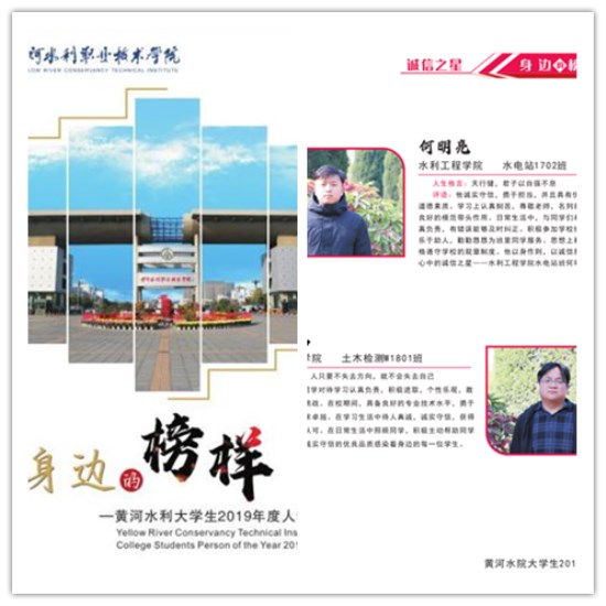 为树立大学生先进典型,深入挖掘榜样人物,我校组织开展了“身边的榜样——黄河水院大学生2019年度人物”评选活动。经过学院推荐、完美网页版评选、照片采集等环节,在全校范围内评选出“最美大学生”“学习标兵”“道德模范”“技术能手”“三好学生”“优秀学生干部”等8类共141名大学生年度人物,并将人物事迹制作成宣传册和展板进行宣传。活动围绕立德树人根本任务,积极培育和践行社会主义核心价值观,集中展现了当代大学生的精神风貌,表彰了一批敢于有梦、勇于追梦、勤于圆梦的先进典型,使广大学生学有榜样、赶有目标,见贤思齐、完善自我,在全校范围内形成了“处处有榜样,人人学榜样”的良好氛围,充分发挥了先进典型的示范引领作用。