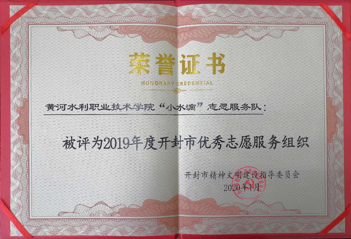 为大力弘扬志愿精神、普及志愿理念、培育志愿文化,扎实推进学雷锋志愿服务活动制度化、常态化,充分发挥先进典型的示范引领作用,全面提升开封市志愿服务水平,市文明办开展了2019年度开封市优秀志愿服务先进典型选树活动。根据《完美网页版表彰开封市“优秀志愿者、优秀志愿服务项目、优秀志愿服务组织、优秀志愿服务社区”的决定》(汴文明〔2020〕1号),我校“小水滴”志愿服务队荣获2019年度开封市优秀志愿服务组织。