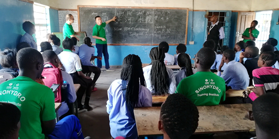 欢迎仪式结束后,我校社会实践小分队的老师们为赞比亚当地学生上了其人生当中第一堂中文课,简单介绍了中国传统文化,教授他们学会了说“中国”“赞比亚”“黄河水院”等词汇。随后,队员们一起整理陈旧的教室、为教室更换新的照明设备,尽自己的力量为当地学生改善了学习环境。