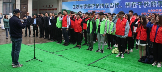 开封市政协副主席苗琛在致辞中指出“珍爱生态、保护环境”是人类社会实现可持续发展的必然要求。在“世界地球日、全国科技活动周、世界环境日”期间,社会各界以科普展览、双创讲座、创新教育、科技成果展览等形式,向社会公众特别是青少年普及科学知识,弘扬生态文明,传播科学文化,必将对推动我市科技创新和绿色发展具有重大意义。九三社员、我校教师杨立功带领大家宣誓:“从我做起,从现在做起,从点点滴滴做起,关爱地球,用热情传播环保理念,用爱心关注生态环境,用行动践行环保责任,为保护环境奉献力量!”