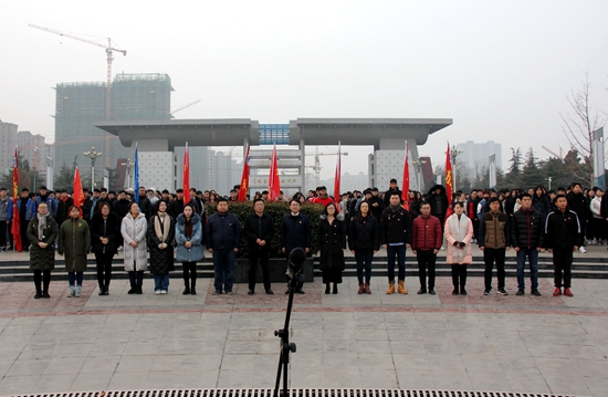 2月25日,开学第一天,我校在明志广场举行新学期升旗仪式。校党委副书记刘卫锋、团委全体人员、各学院分团委书记以及全校1000余名学生干部参加了升旗仪式。