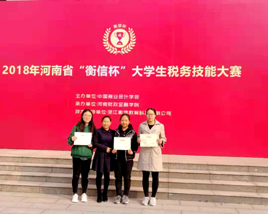 11月11日,我校在2018年河南省“衡信杯”税务技能大赛(本科、高职组)全国选拔赛(省赛)中,以总分第二名的成绩荣获一等奖,顺利入围国赛。本次比赛由中国商业会计协会主办、河南财政金融学院承办、税友集团•浙江衡信教育科技有限公司提供技术支持,全省23所相关院校参赛。