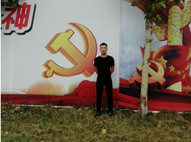 党员王智斌 ,在黄河水院机械学院 党员郭非帆,在六四六社区与党徽合影