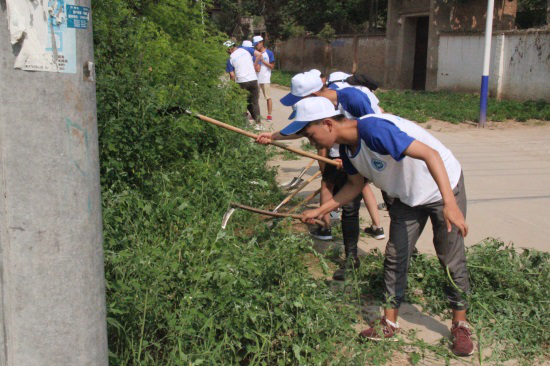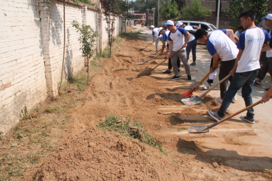 近年来,我校多次组织学生深入郭景村举行“美丽乡村行”社会实践活动,使村容村貌有了显著改善,我校学生的吃苦耐劳精神得到了村民们的一致好评。(供图:校团委)