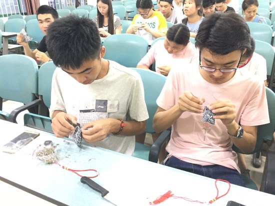 学生们缝制香包