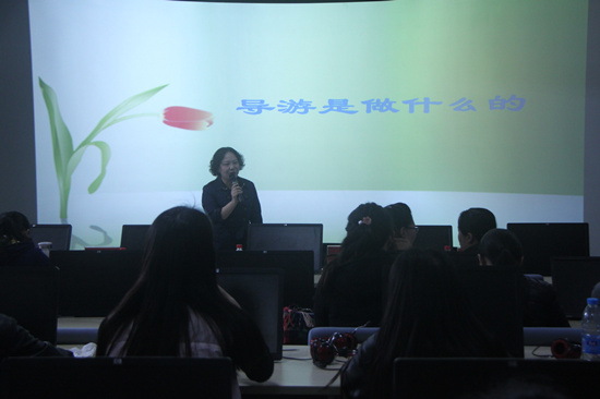 袁晓鸽以“爱旅游——让青春在旅游业闪光”为主题为学生们上了一堂生动的导游课;杨蕴杰从导游员的价值等方面对导游职业进行了全面介绍;张玲以“读万卷书 行万里路”为主题告诉学生们在导游行业中要不断地学习,用刻苦钻研弥补自身不足;李海青、别婷婷结合自身的从业及成长经历等,寄语广大学子只有勤奋努力,才可以做一名优秀的导游员。5位名师名导的报告赢得了在场师生的阵阵掌声。