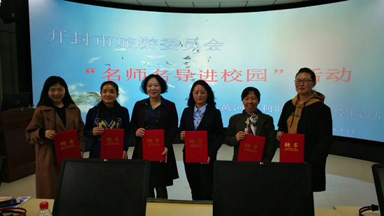 3月23日下午,旅游系举办“名师名导进校园”活动,开封市旅游委导游服务管理中心主任张平应邀出席活动。旅游系党总支书记樊建科、主任焦红强、副主任余楠、旅游管理教研室全体老师及100余名学生参加了此次活动。活动邀请康辉国旅总经理、国家旅游局金牌导游袁晓鸽,高级导游员、国家旅游局“杨蕴杰导游技术技能大师工作室”负责人杨蕴杰,博士导游、专家型导游、河南大学历史文化学院博士后、副教授张玲,第二届河南导游大赛“百强导游”、2015年“中国好导游”李海青,清明上河园讲解员、河南省第三届导游员服务技能大赛导游组第一名、河南省五一劳动奖章获得者别婷婷等5位名师名导作报告,为旅游系师生带来了智慧与思想的盛宴。