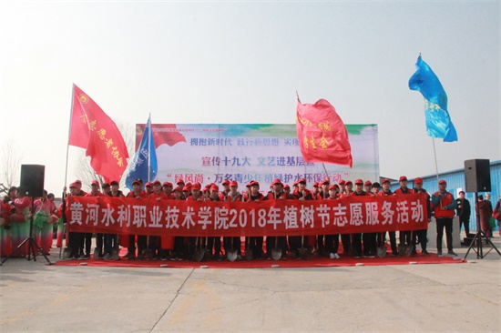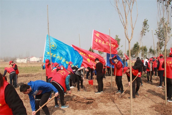 3月10日上午,在第40个植树节来临之际,我校团委组织青年志愿者协会、校学生会学生干部100余名志愿者赴顺河回族区土柏岗乡北神岗村参加由开封市团市委、农林局、市少工委联合开展的全市“绿风尚·万名青少年集中义务植树活动”。
