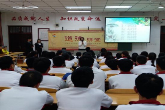 本次道德讲堂分为“赏一部情景剧”“学一点礼仪”“看一部短片”“唱一首歌曲”“作一个承诺”5个模块。活动邀请开封市敦复书院的王少沛老师为主讲人,她以“十恩”为开场进行了感恩宣讲,又针对当前学生身边的“道”与“德”进行了辩证讲述。在“看一部短片”环节中,学生们观看了黄大年同志纪录片,深入了解了黄大年同志的先进事迹,学习他“心怀大我 至诚报国”的精神。最后,信息工程系党总支副书记李晓娟与全体师生共同举拳宣誓,要共同遵守《文明公约》。她希望学生们在日后的生活中将所学、所想、所感去影响身边的人,弘扬传统美德,传播正能量,展现当代大学生良好的精神面貌。(供图:信息工程系)
