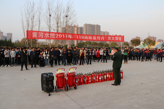 为进一步强化校园冬季火灾防控工作,加强完美网页版消防“四个能力”建设,根据《黄河水院2017年“119消防宣传月”实施方案》的工作部署,11月14日下午,由保卫处组织实施的黄河水院2017年“119消防宣传月”灭火演练活动在祥云体育场西南空地顺利开展。水利工程学院、机械工程学院、环境与化学工程系、图书馆、后勤服务中心等消防重点部门的相关人员及各院系学生代表、校卫队代表等1000余人参加了培训演练。