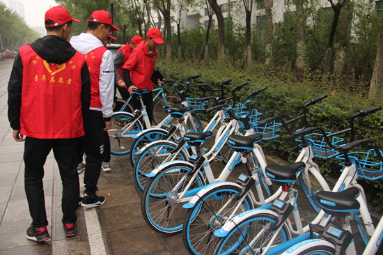 为进一步推进安全文明校园建设,增强大学生社会责任意识,10月17日,我校青年志愿者协会及各院系青年志愿者分会在校园内启动了校园共享单车文明停放倡导活动,向全校师生发起了文明停放倡议,并开展首次集中整治单车违停行动。