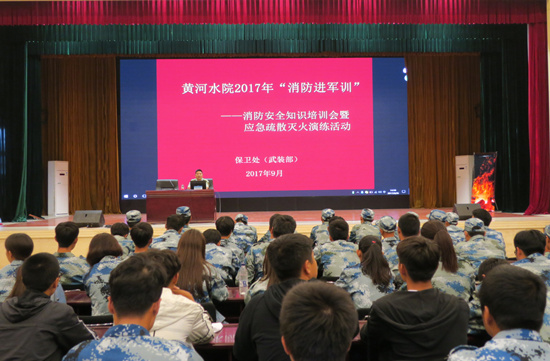 为贯彻落实省军区战备建设局、省教育厅、省公安消防总队联合印发的《全省消防进军训工作实施方案》的要求,全面普及消防安全知识和技能,不断提升师生消防安全意识和自防自救能力,9月26日下午,我校在学生活动中心报告厅举行了以“2017年消防安全进军训”为主题的消防安全知识培训会暨应急疏散演练活动。全校各院系新生辅导员(班主任)及学生助理、新生代表等800余人参加了此次活动。