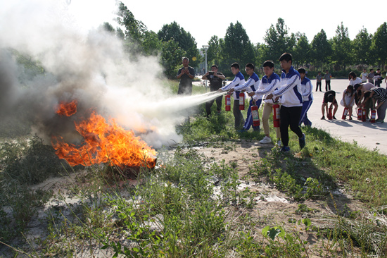 活动中,消防警官以近年来因学生宿舍违规用电而导致的火灾事故为例,详细介绍了消防安全的相关知识,并具体介绍了干粉灭火器的使用方法,对操作程序做了标准示范,并解答了现场参训人员提出的问题。随后进行了火灾现场的模拟演示,参加培训人员进行了灭火实训演练,依次轮流使用灭火器灭火。我校消防科给参加培训的师生代表发放了消防知识宣传卡片,要求师生们平时加强消防常识学习。