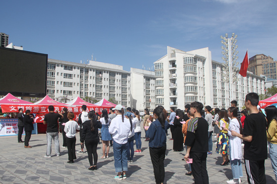 为进一步做好文明旅游宣传工作,提升游客文明素质,塑造“讲文明、树新风、重礼仪,诚信友爱、热情好客、安全有序”的人文旅游环境,助力我校精神文明单位创建工作,4月18日下午,由我校文明办主办、旅游系承办的“文明旅游宣传暨志愿服务活动”启动仪式在我校扬帆路顺利举行。旅游系党总支书记樊建科、系主任焦红强、副主任余楠及旅游系全体教师、部分学生代表等近200人参加了仪式。今年的文明旅游宣传暨志愿服务活动的主题是“文明旅游,从我做起”。