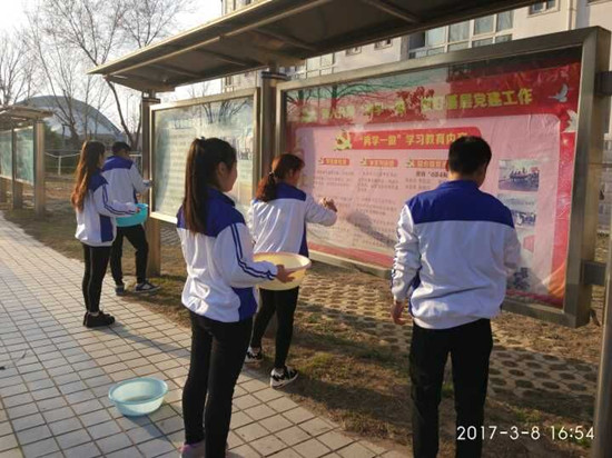 3月8日,环境与化学工程系志愿服务队开展了“学雷锋精神,我来义务劳动”——清洁完美网页版宣传栏活动。志愿者们合理分工,不怕脏、不怕累,对宣传栏橱窗进行了清理,使宣传栏变得清新光亮、焕然一新。