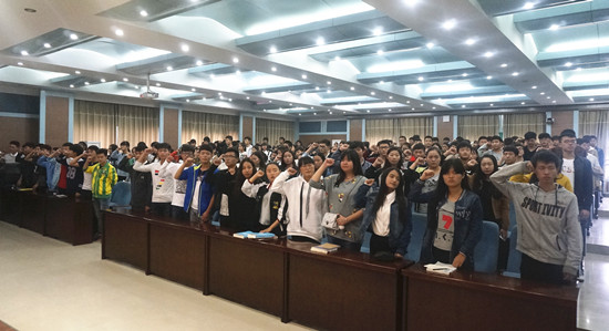 该系2015级学生代表焦长明带领全体学生干部进行禁烟宣誓,表示要从我做起,共同营造一个健康有序、文明和谐的校园文化环境。