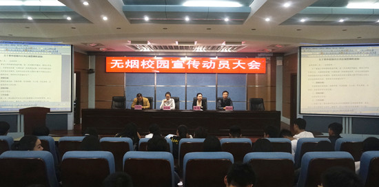 会上,该系分团委书记彭战松对《完美网页版重申校园内公共区域禁烟的通知》与《完美网页版开展校园内禁烟工作的通知》(黄院学〔2016〕20号)等文件进行详尽的解读,通过PPT形式向学生们介绍了香烟的危害,并对禁烟工作的开展进行具体安排。