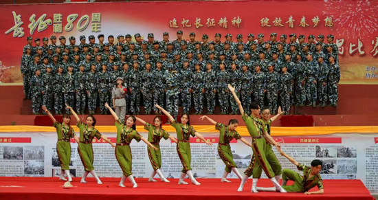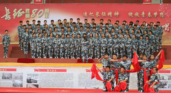 校广播站成员演唱的《长征颂》,再现了红军长征的光辉历程,赞颂了红军在党的领导下创造的惊天动地的英雄壮举,充分表达了亿万人民继承革命传统、创造时代业绩的坚定决心。