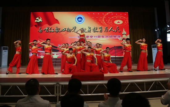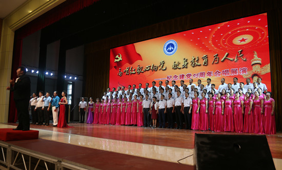 为庆祝中国共产党建党95周年,弘扬党的优良传统,传颂党的丰功伟绩和我国改革开放近40年来的伟大成就,6月26日上午,我校以“高唱红歌心向党,献身教育为人民”为主题的合唱展演活动在学生活动中心报告厅隆重举行。我校13个基层党总支展演的14首歌曲,唱响了对建党95周年的赞歌,表达了坚定理想信念,坚持职业教育事业的伟大情怀。
