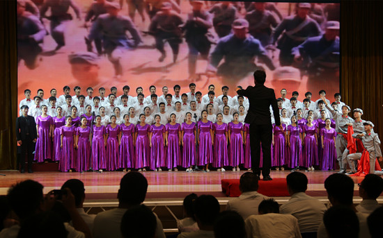 土木与交通工程学院演唱的歌曲《在太行山上》,展现了太行山人民“母亲叫儿打东洋,妻子送郎上战场”的抗日热情和英勇顽强的抗日精神。