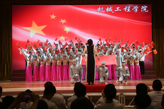 机械工程学院代表队演唱的《迎风飘扬的旗》,唱出了中国人民坚持走改革开放的新路,坚定富强民主的理想和跟着信仰走的坚定不移的决心!
